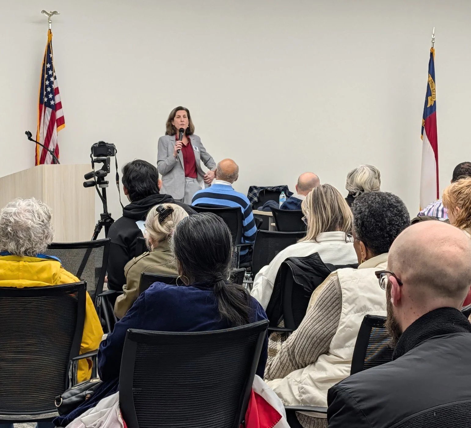 I've been annoyed, as you are, that my opponent calls himself a conservative judge. And the reason that bothers me is because, when I was growing up, conservative meant that you believed in traditional values and norms. That meant you wanted free markets and individual liberties. You wanted limited government interference in your life, right? And I just don't think Republican judges should be able to use that word anymore. Because, frankly, they are choosing a party that wants to interfere in every aspect of our lives. They're standing with a party that is dismantling our democratic norms and traditions – things like separation of church and state, birthright citizenship, due process. These basic things that we've come to understand as our traditions. And then they're also aligning themselves with a party that's rolling back our rights and messing with the free markets on a daily basis. So when you look at all those things, I just think, in this bizarre time that we're living in, it's the Democratic judges that are going to be the ones that are going to conserve our democratic norms and traditions and preserve our liberties and hold people accountable that violate the rule of law. And so, courts are supposed to be non-partisan, but we just have a lot of politicians lately who want to be on the court. And I think the court needs to be independent. It needs to be free from that influence of those special interests. It needs to be free from the General Assembly, from partisan politics. And we just have to work in our own universe, so this is why I'm running, to build the kind of court that North Carolina needs.
